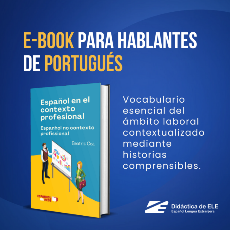 Ebook para estudiantes hablantes de portugués. Por medio de historias ambientadas en el contexto del trabajo, presenta vocabulario esencial, como los falsos amigos español-portugués, equipando al estudiante con el léxico y las estrategias para la comunicación eficaz.
